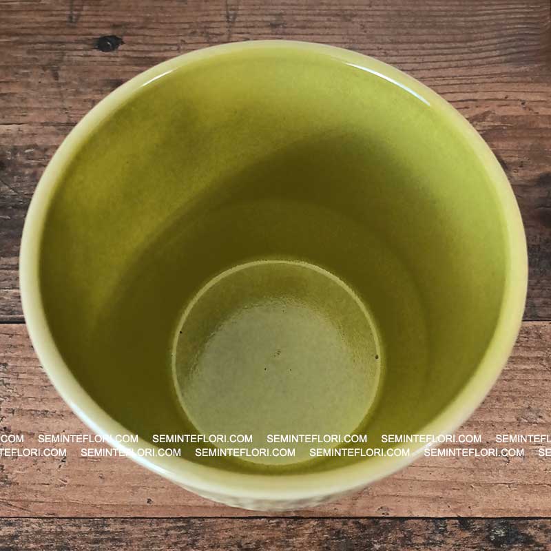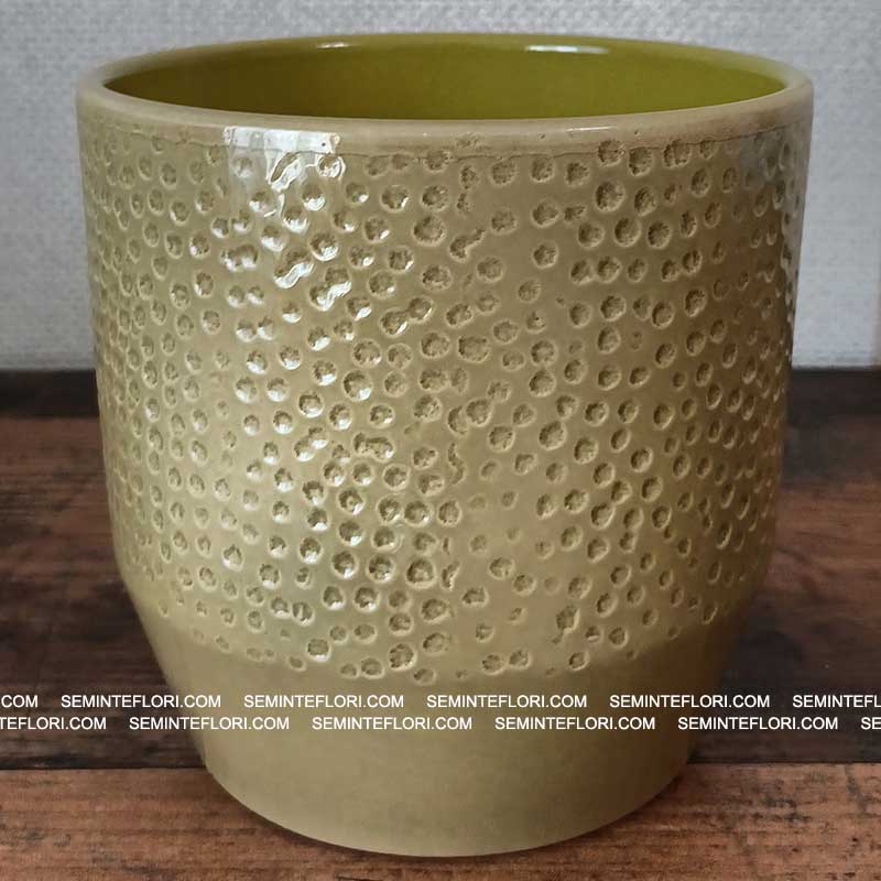Suprafata lucioasa evidenteaza nuanta delicata de verde fistic, oferind un aspect sofisticat. Decorat cu un model subtil de puncte, Ghiveciul Pisa Dots Finish se potriveste perfect atat in interioarele moderne, cat si in cele clasice sau boeme.