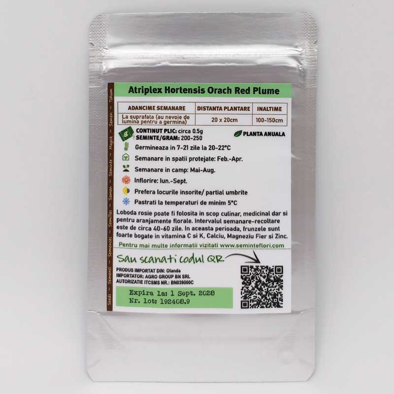 Loboda Rosie Orach Red Atriplex Hortensis Red Plume este bogata in vitamine (C, K) si in calciu, magneziu, fosfor, fier si zinc.